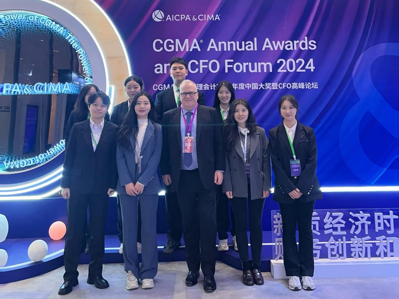 2024年11月20日,一支由南京审计大学金审学院国际教育学院张晓杰、朱倩文老师带队,国际教育学院顾炎煦,满馨月,张博凯,张渺,沈欣,饶心晴同学组成的志愿者团队前往上海市浦东新区,参加了CGMA全球管理会计2024年度中国大奖暨CFO高峰论坛。