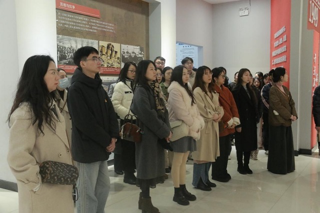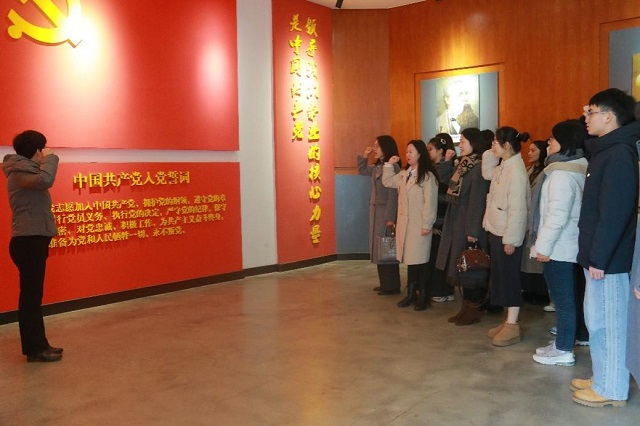 参观尾声,党员师生面对鲜红的党旗在领誓人的带领下举起右拳庄严宣誓,重温入党誓词,再一次用铮铮誓言诠释入党初心。金融与经济学院的全体党员将牢记入党誓词,坚定理想信念,传承红色精神,勇担时代重任,不忘初心,砥砺前行,书写新时代共产党员的辉煌篇章。