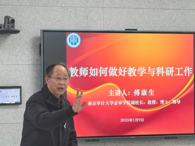 围绕立德树人根本任务,遵循“以新提质,以质增效”总体思路,增强青年教师履行职责能力,提升青年教师教学科研水平,助力青年教师迅速成长,南京审计大学金审学院金融与经济学院于2025年1月9日召开第四届青年教师学习交流会。金审学院副校长傅康生教授、金陵科技学院商学院汪浩教授、金审学院管理学院副院长石林老师受邀参加并作专题报告,金融与经济学院全体教师参加。会议由金融与经济学院院长蔡则祥教授主持。