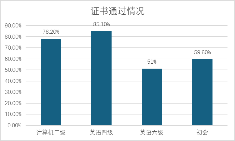 班级同学以自我提升为纪律,共同营造出班级的良好学风。班级平均绩点稳居学院前列,超过46%的同学绩点达到3.0以上,此外,班级在计算机二级通过率78.2%,英语四级考试通过率85.1%,英语六级通过率51%,初级会计职称通过率59.6%,稳居本专业前列。展现了卓越的学习能力。
