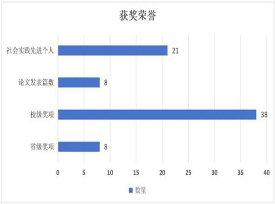 入学以来,累计共有21人获得社会实践先进个人奖项,班级同学累计发表论文8篇,共获优秀团员、优秀志愿者、三好学生和优秀班干等校级奖项38项,省级奖项8项。
