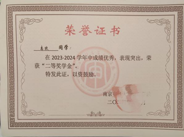 她入学担任班级学习委员,始终以身作则,严守纪律。身为班级学习的引领者,她的专业成绩十分突出,稳居班级前列,为同学们树立了良好的榜样。在她的带动下,班级学习氛围日益浓厚,同学们的学习积极性显著提高。