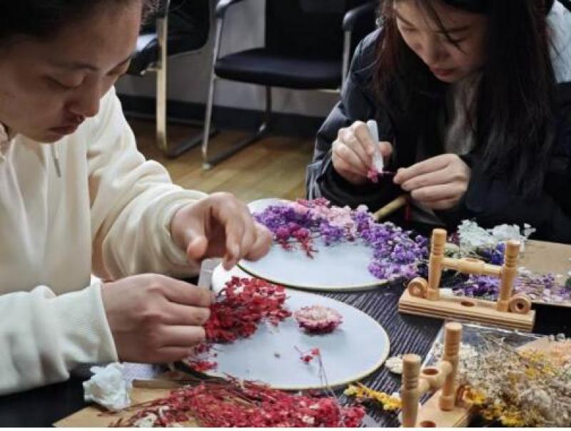 活动现场,党员们手持蚕丝线、铜丝和纸板,全神贯注投入缠花制作。“勾、缠、捻”,每一个动作都饱含着对传统工艺的敬畏,每一次缠绕都是与千年技艺的对话。不一会儿,精美的竹子、桂花等缠花作品在他们手中诞生,栩栩如生。在这一过程中,党员们深刻领悟到传统手工艺“匠人精神”的真谛,感受到非物质文化遗产跨越时空的独特魅力,体会到坚持与专注的力量。