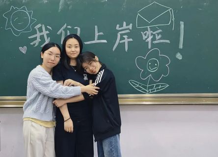 阳光透过斑驳的梧桐叶,斜斜洒在教室后墙的黑板上。上岸两个大字被金芒镀上金边,粉笔勾勒的箭头刺破云层,指向远方。陈心瑶、赵慧敏、吴婉祯,她们的影子在阳光里交叠,恍惚间又回到那天,三人挤在堆满习题册的课桌前,郑重约定:要上岸,就一起上岸。