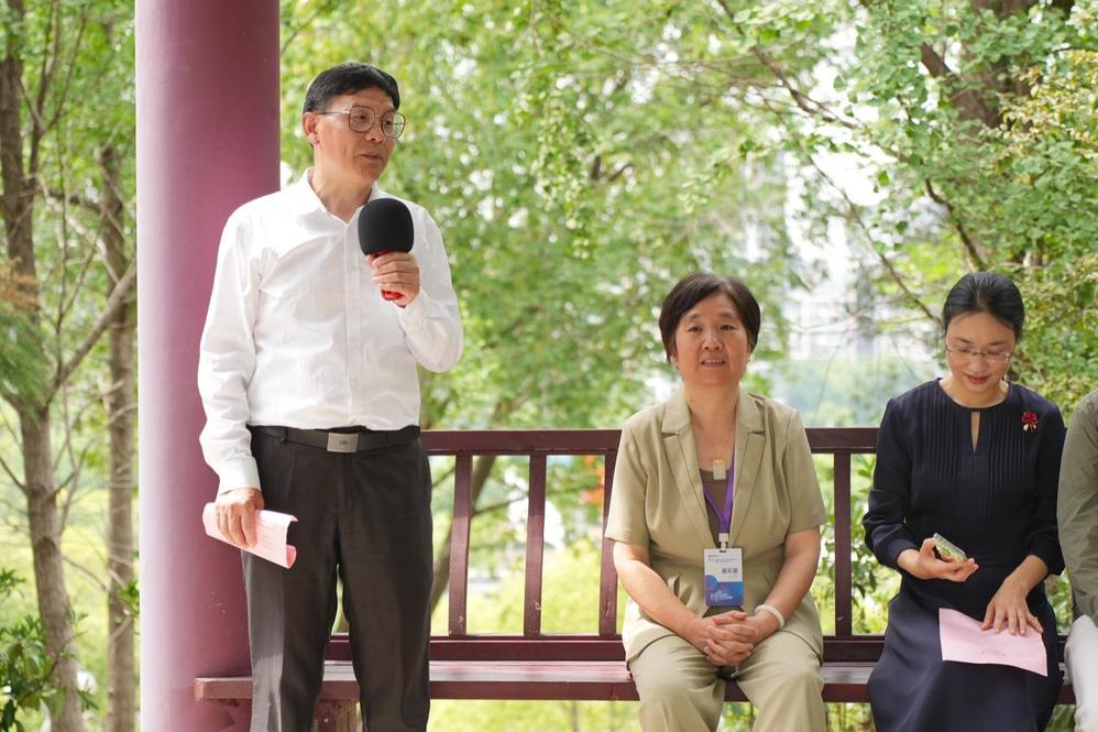 沈明围绕《鹤飞亭记》《重建鹤飞亭记》的产生、内容及意义等进行了讲解。鲍文娟在致辞中欢迎教师教育学院校友回母校参加校友联谊会成立大会等联谊活动,介绍了学院师生代表捐赠文化石刻的情况,同时向参与捐赠的师生校友表示感谢。