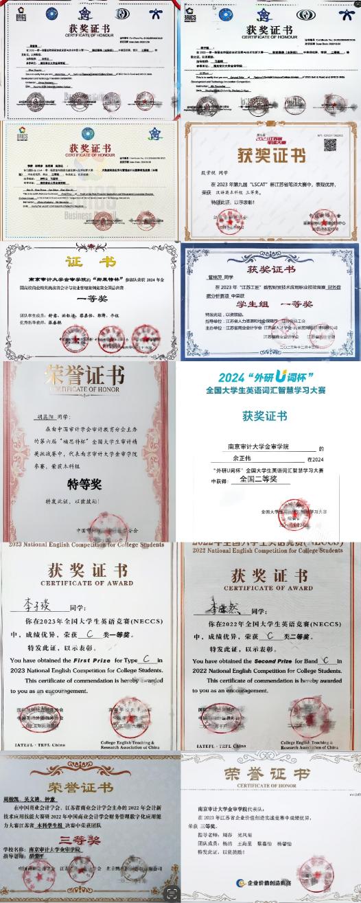2021级审计实验班部分竞赛证书展示