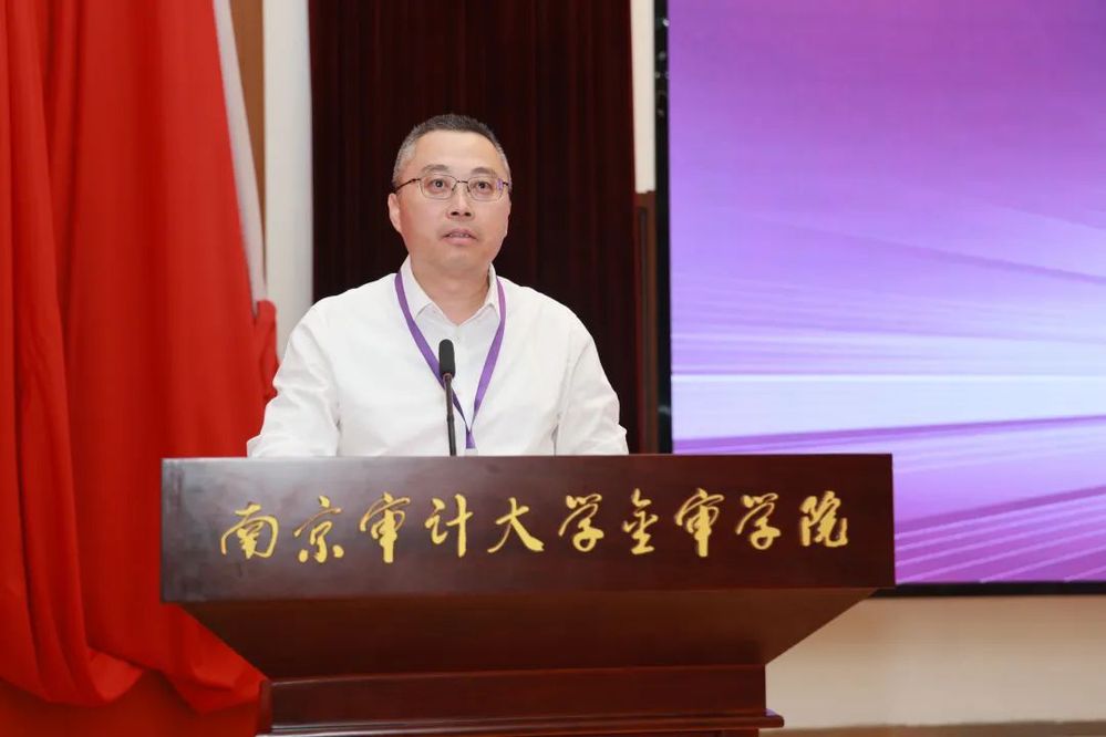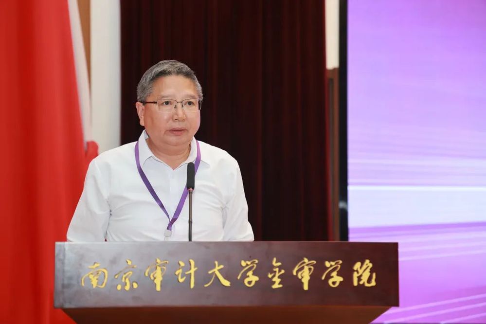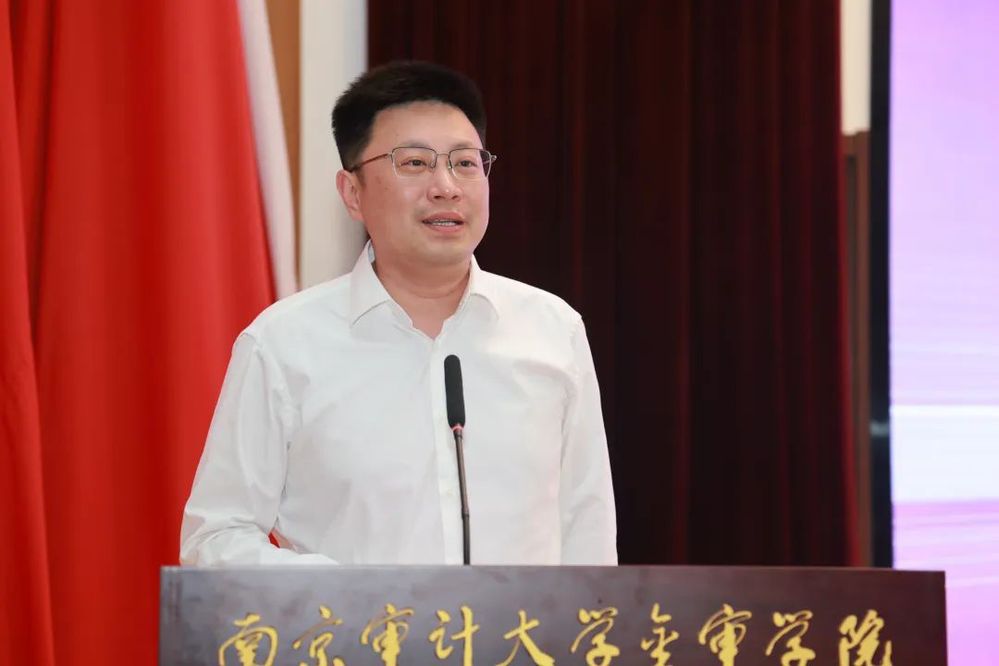 南京审计大学党委常委、副校长任志成讲话,他代表南京审计大学全体师生员工及广大校友,向南京审计大学金审学院校友联谊会的成立表示热烈的祝贺!向长期以来关心、支持、南京审计大学、南京审计大学金审学院建设发展的校友们表示衷心的感谢!他介绍了南京审计大学建校40多年来的奋斗旅程和办学成绩,回顾了南京审计大学和金审学院的历史渊源和深厚情谊。他讲到,作为我国审计高等教育的重要发源地,南京审计大学始终以“因审而立、为审而存、依审而兴、靠审而强”为办学定位,致力于培养具有家国情怀、专业素养和国际视野的经济监督人才,两校同根同源、血脉相连,共同为我国审计事业和教育事业做出了积极贡献。校友强,则母校强;母校兴,则校友荣。他希望校友联谊会发挥情感凝聚、资源共享、文化传承功能,凝聚智慧力量、共谋未来发展。他寄语广大校友以联谊会成立为起点,以情感为纽带,以发展为共识,把握新时代赋予的广阔舞台,携手共同谱写“校友-母校”命运共同体的崭新篇章。