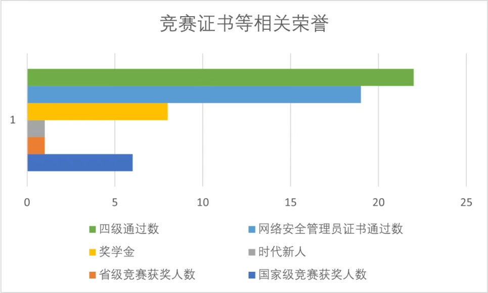 在学习方面,班级注重营造优良班风学风,学业素养扎实,平均绩点在年级中崭露头角。班级学生累计获奖100余项,在各类专业认证考试中表现不俗,其中英语四级通过率 63%,网络与信息安全管理员三级通过率54%,展现出良好的学习能力与扎实的专业实践技能。
