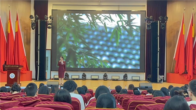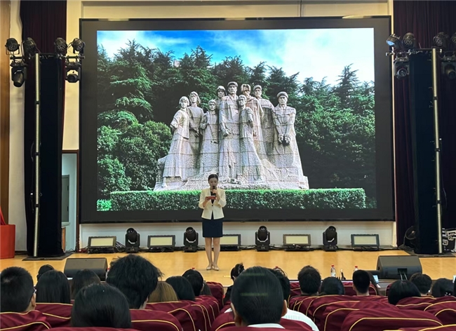 宣讲活动在沉浸式短片中拉开帷幕。宣讲团成员以 信仰的力量 为主题,深情讲述五位英烈的感人事迹:南泥湾拓荒者刘亚生烈士在狱中坚守信仰的钢铁意志;“黎明前的血衣”背后革命伉俪的生死绝恋;艺术家赵良璋烈士“左手持枪、右手执笔”的革命浪漫主义;白丁香烈士为保护战友慷慨赴义的巾帼豪情;孙小梅烈士投身解放事业的青春壮歌。宣讲者以多个人称视角叙事,配合历史图片与场景还原,带领师生重返烽火连天的革命岁月。