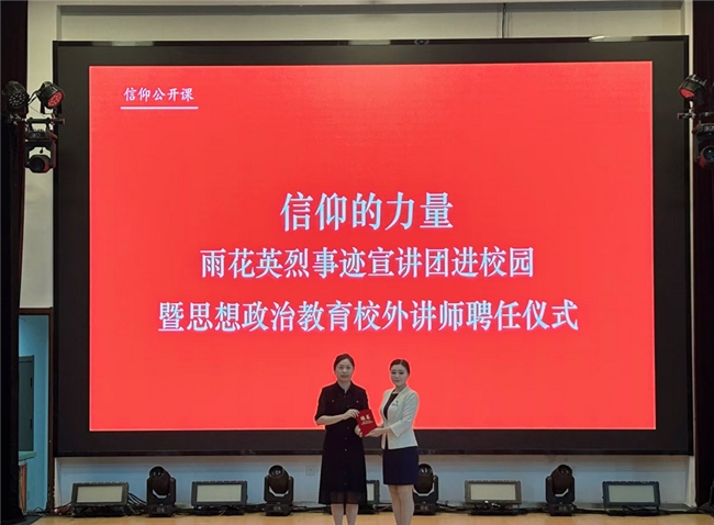 在聘任仪式环节,会计学院党总支书记于璐为雨花英烈事迹宣讲团成员颁发“思想政治教育校外讲师”聘书,并在致辞中表示,会计学院始终将红色教育作为思政育人的重要内核,此次活动是落实“大思政课”建设的创新实践,旨在让雨花英烈精神成为青年学子成长的精神养分。
