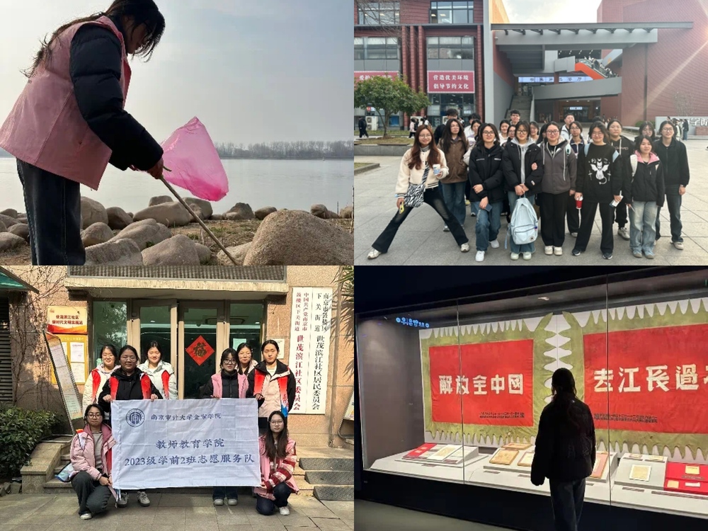 教师教育学院始终倡导“实践出真知”的理念,她带领班级通过丰富的实践活动将课堂所学转化为社会价值。在校园,组织同学清扫校园,守护“我们的家”。二月里,参与“传承雷锋精神,绽放时代光芒”实践,赴长江边,虽寒风凛冽,仍齐心协力捡垃圾,让江岸重归整洁;后又走进渡江战役纪念馆,回溯历史伟力,以青春之姿展现“敢想敢为、善作善成”担当。这些经历不仅拓展了她的视野,更让她体会到:唯有走出象牙塔,方能触摸时代脉搏,与社会同频共振。