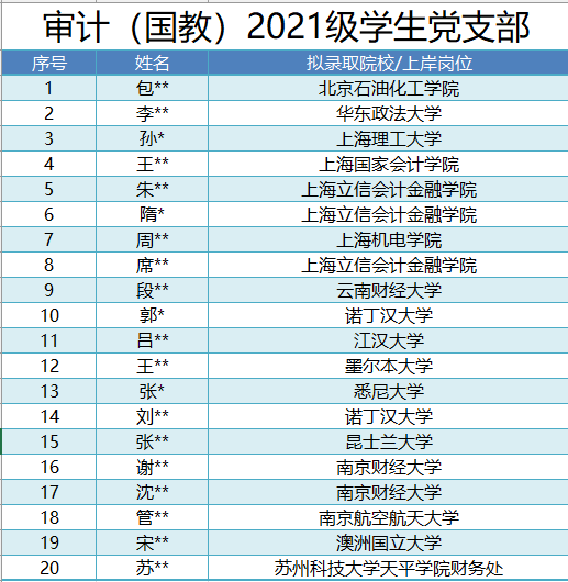 在审计学院(国际教育学院),有这样一个“硬核”集体——2021级学生党支部,20名大四学生党员全员实现高质量升学与就业,用奋斗书写了“一个支部一座堡垒”的青春答卷。从专业顶尖院校到国际知名学府,从学术科研尖兵到学生工作骨干,他们以“聚是一团火,散是满天星”的姿态,诠释着新时代青年党员的责任与担当。