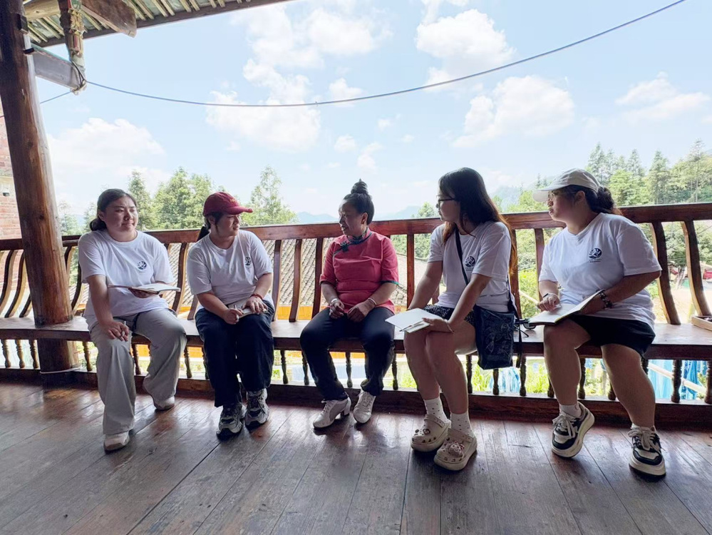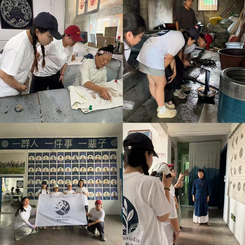 实践小组的深度驻点选在了国家级非物质文化遗产生产性保护示范基地 —— 宁航蜡染馆。学子们与蜡染馆创始人宁曼丽进行了深入对话,共同探讨了坚守传统工艺所面临的挑战以及在产业化进程中的创新实践。随后,学子们化身 “学徒”,细致观察、亲身体验。国际知名服装设计师成昊也从现代设计的视角,为学子们分析了传统蜡染工艺与当代生活融合的路径和潜力。