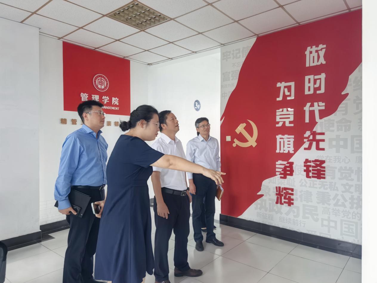 9月9日,南京审计大学党委副书记陈中建一行莅临我校,专题调研指导基层党组织建设情况。南京审计大学金审学院校长、党委副书记俞安平,党委书记王军,纪委书记沈明,校长助理成庭羽、孟琪璐参加调研。