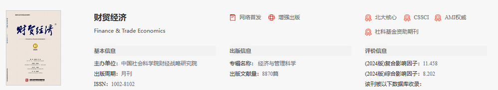 《财贸经济》是中国社会科学院财经战略研究院主办的CSSCI 权威核心期刊,长期稳居应用经济学领域 “第一梯队”。作为国家顶级智库的学术阵地,其复合影响因子(2024 版)达 11.458,综合影响因子 8.202,在经济学类期刊中排名前 5 位,且在社科院评价中心发布的经济学类 109 种期刊中综合影响力位列第 8。期刊学术质量与政策关联度兼具 —— 论文常被《中国社会科学文摘》转载,并直接为财政部、商务部等部委的 “营改增”“跨境电商综试区” 等重大政策提供理论支撑。其主办单位的智库属性,使其成为连接学术研究与国家战略的核心载体,在财政、贸易等细分领域的专业性可与《经济研究》媲美,在经济学领域具有较高的学术影响力,是高校职称评审、科研成果认定的 “权威 C 刊标杆”。林仕伟老师的这一成绩,彰显了他的学术实力和对我校科研工作的贡献,实属难得。