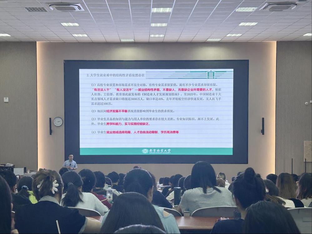 9月26日下午,由江苏省高校招生就业指导服务中心主办、我校承办的“规划启航 职引未来”全省高校就业创业指导公益巡讲活动在校C东101顺利举行。活动特邀南京林业大学学生工作部副部长、就业创业指导中心主任陈养彬担任主讲人,吸引了近300名师生积极参与。