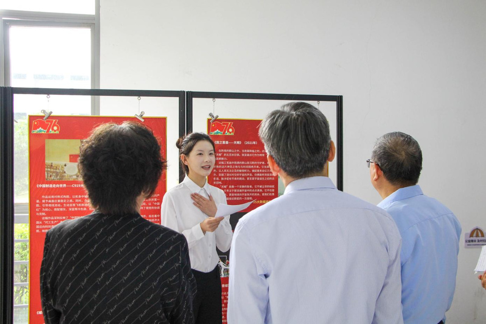 本次活动采取“学生主导、共同策展”的形式,既是一场艺术盛宴,更是一堂生动的思政课。学生围绕“76载中国图景”这一主题,挑选反映国家发展、民族精神、时代风貌、生活变迁的各类艺术作品,涵盖音乐、舞蹈、绘画、书法、摄影、雕塑、建筑、影视等。