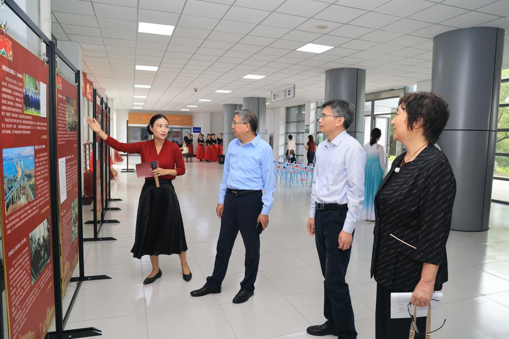 浓厚的艺术氛围与深沉的家国情怀交织,吸引了师生们驻足参观。25级学前教育专业学生周梓涵表示,展览形式新颖,看到同学们推荐和解读的作品,感到特别亲切,引起了共鸣,从艺术中真切感受到国家发展的脉搏和一代代人的奋斗精神。教师教育学院教师田春表示,这不仅是一次艺术的享受,更是一次深刻的思想洗礼。同学们在参与策展和阐释的过程中,完成了从“被动受教育”到“主动思考与内化”的转变,启智润心、凝心铸魂。