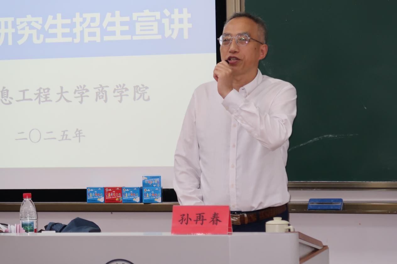为助力学子明晰大学学业规划、洞悉考研前沿动态,2025年10月17日下午,南京信息工程大学商学院党委书记孙再春应邀到我校开展题为“大学学业规划与考研准备”的讲座,同步开展2026年南京信息工程大学商学院研究生招生宣讲,为在场学子铺就学业发展与考研深造的明晰路径。