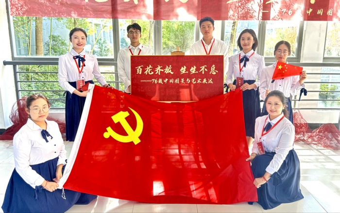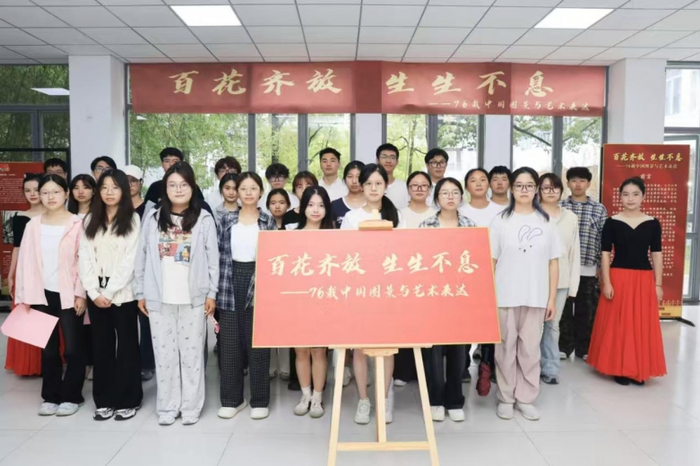 近日,为期近一个月的南京审计大学金审学院“百花齐放 生生不息——76载中国图景与艺术表达” 展览圆满落下帷幕。本次展览作为我校“美育+德育”深度融合的重要实践,自开幕以来吸引了广大师生踊跃参观,成为校园内一道亮丽的文化风景线,并取得了丰硕的育人成果。