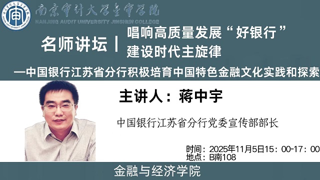 讲座预告|唱响高质量发展“好银行”建设时代主旋律——中国银行江苏省分行积极培育中国特色金融文化实践和探索