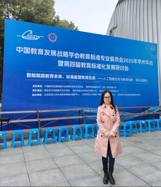 2025年11月1日,由中国教育发展战略学会教育标准专业委员会主办的“2025学术年会暨第四届教育标准化发展研讨会”在南京艺术学院美术馆隆重召开。本次会议以“智能赋能教育未来,标准重塑教育生态——人工智能应用与教育创新:高标准的融合”为主题,艺术设计学院数字媒体艺术系主任唐青老师应邀参会,与来自全国高校、科研机构及行业领域的专家学者围绕人工智能时代教育背景下的专业教育标准化建设展开深度交流。