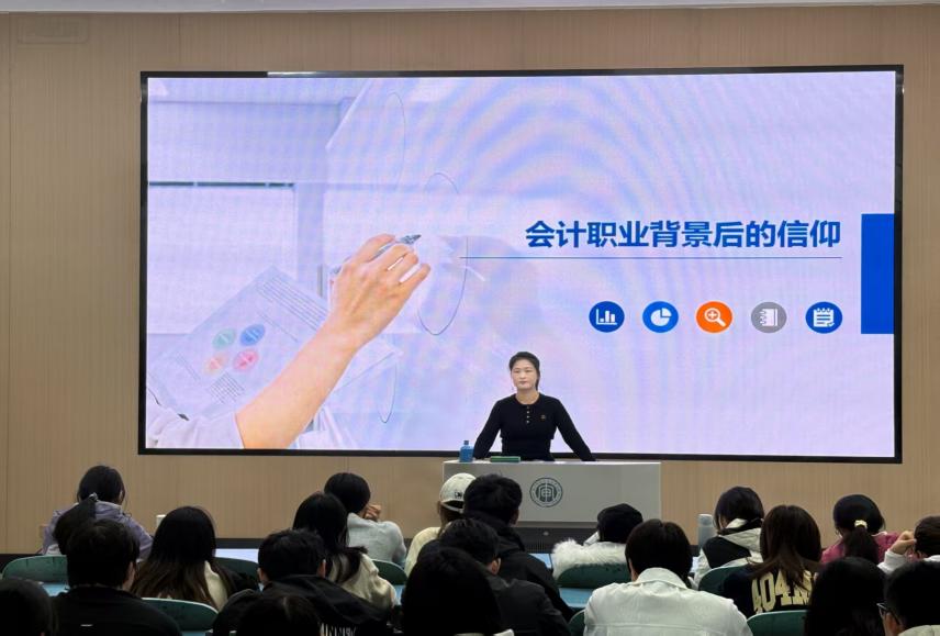 为帮助新生更快适应大学生活,明确会计专业学习方向与职业发展信仰,会计学院于2025年11月12日在B南109教室举办“会计职业背景后的信仰”专题引导课。本次引导课由我院2018届优秀毕业生、中兴华会计师事务所江苏分所项目经理朱晶晶主讲,为同学们清晰勾勒出专业学习与职业成长的蓝图。