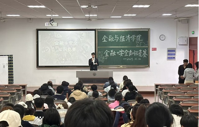 为积极响应“我为同学做实事”实践活动号召,切实提升青年学生的金融安全意识与综合防范能力,11月12日下午,金融与经济学院在C南101教室成功举办“金融+安全”知识竞赛。作为学院“金盾行动”系列活动的首场项目,本次活动聚焦金融风险防范与校园安全教育,通过“视频导学+竞技答题”的融合形式,引导同学们树牢“安全第一、风险可控”的理念,筑牢校园金融安全防线。