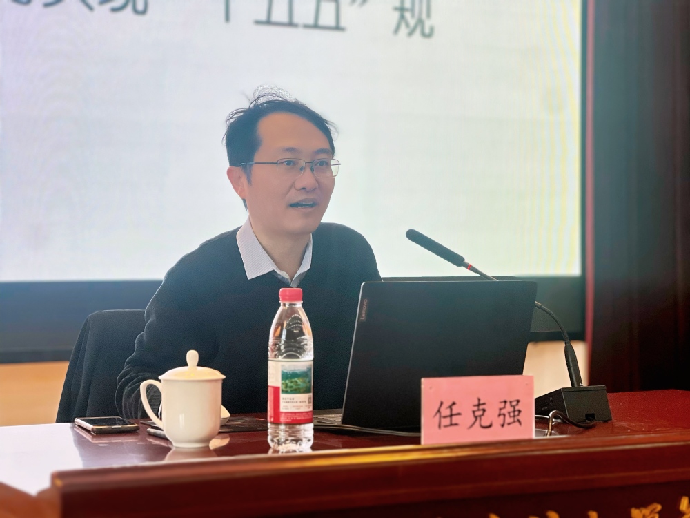 任克强以“‘十五五’时期经济社会发展的主要目标与战略任务——学习党的二十届四中全会精神”为题宣讲。报告围绕四大核心展开:一是明确“十五五”时期是基本实现社会主义现代化的关键时期,回顾“十四五”成就,分析国内外发展环境;二是解读该时期经济社会发展的指导方针与高质量发展、科技自立自强等七大主要目标;三是梳理发展新质生产力、构建新发展格局、推进共同富裕、统筹发展和安全等战略任务及具体举措;四是强调需凝聚全党全国力量,为实现“十五五”规划提供保障。报告内容兼具理论深度与实践指导性。