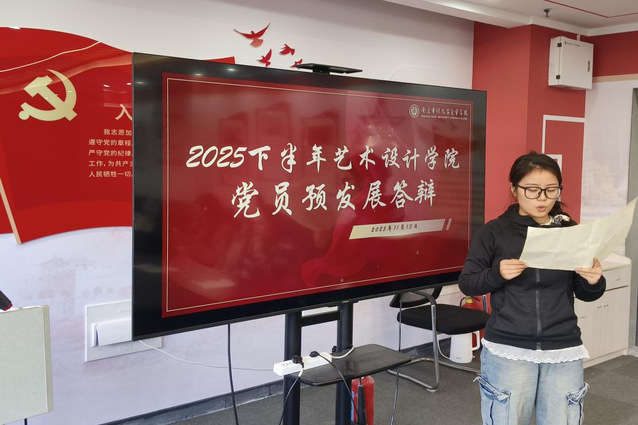 为严格落实党员发展工作要求,全面深入考察发展对象的政治觉悟、理论素养、实践能力及入党动机,确保将政治过硬、信念坚定、担当有为的优秀人才吸纳进党组织,艺术设计学院学生党支部于2025年11月13日在艺术学院会议室召开发展对象答辩会。本次会议由学生党支部书记曹婷婷老师主持,14名发展对象参加答辩,所有辅导员出席会议。