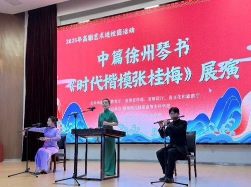 11月16日下午,原创中篇徐州琴书《时代楷模张桂梅》温情开演。这部以“七一勋章”获得者张桂梅真实事迹为蓝本的作品,通过国家级非物质文化遗产徐州琴书的独特艺术形式,生动展现了张桂梅扎根云南贫困山区40余年、创办女高助力女孩改变命运的感人故事。朴实的唱词、真挚的情感,深深打动了在场观众,传递出坚守初心、无私奉献的时代正能量。