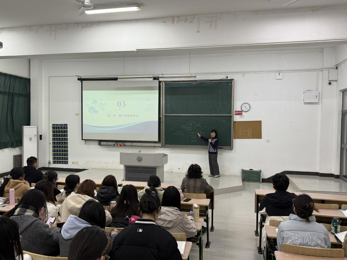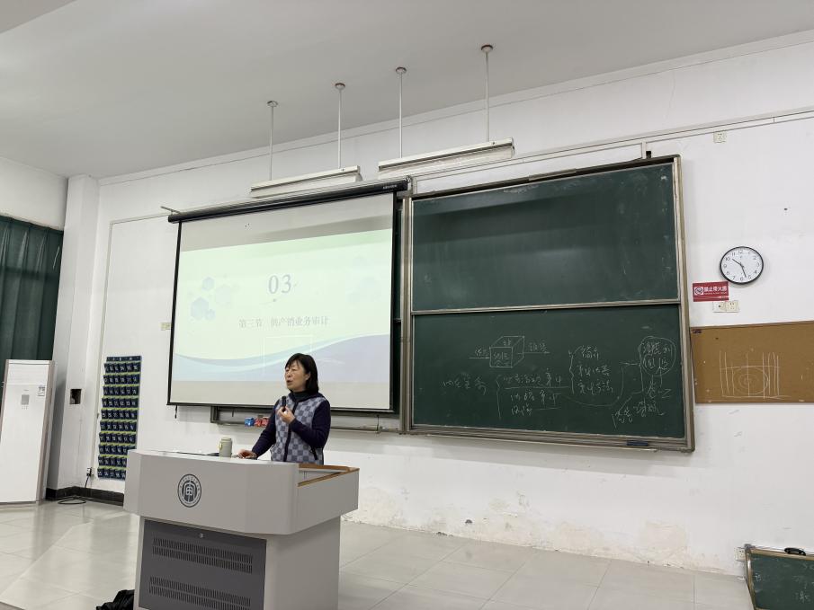 2025年11月19日上午,审计学院时现教授以《供产销业务审计》为题开讲教学示范课,为全院教学工作提供实操性参考与示范。本次课程聚焦审计专业核心内容,紧密衔接企业实务需求,学院全体专职教师到场观摩学习。