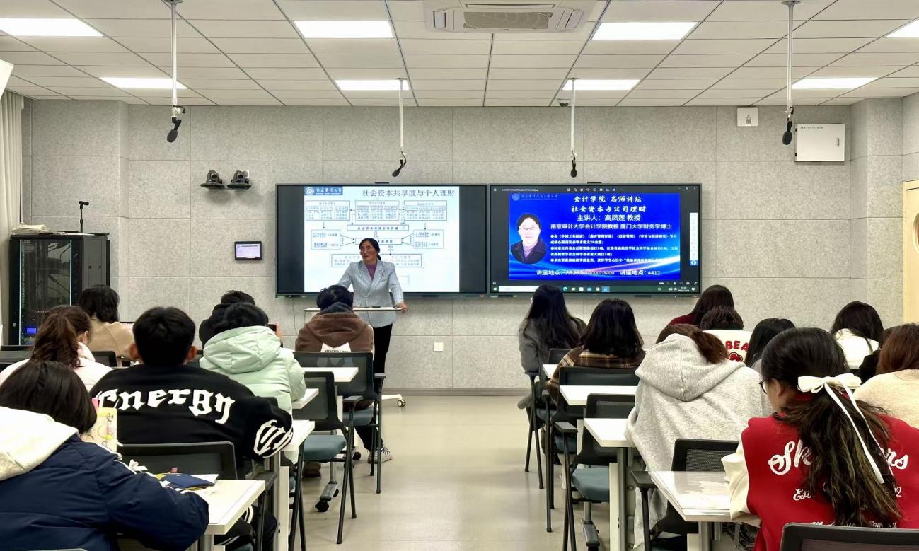 为拓展师生学术视野,深化对会计和财务管理前沿问题的理解,11月19日,南京审计大学会计学院高凤莲教授应邀做客会计学院名师讲坛,在A412作题为“社会资本与公司理财”的学术分享。本次讲座由会计学院副院长周莎主持,副院长胡爱平及学院师生共同参加。