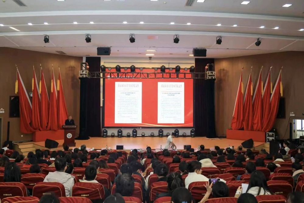 11月26日下午,我校在图书馆一楼报告厅隆重举行“2025年教学创新大赛暨年度教学专项活动总结表彰大会”。大会全面总结本年度教学创新成果,表彰先进典型,凝聚发展共识,进一步推动教育教学高质量发展。校党政领导班子出席会议,各学院、部负责人及全体任课教师参加会议。