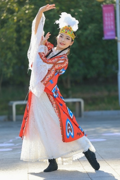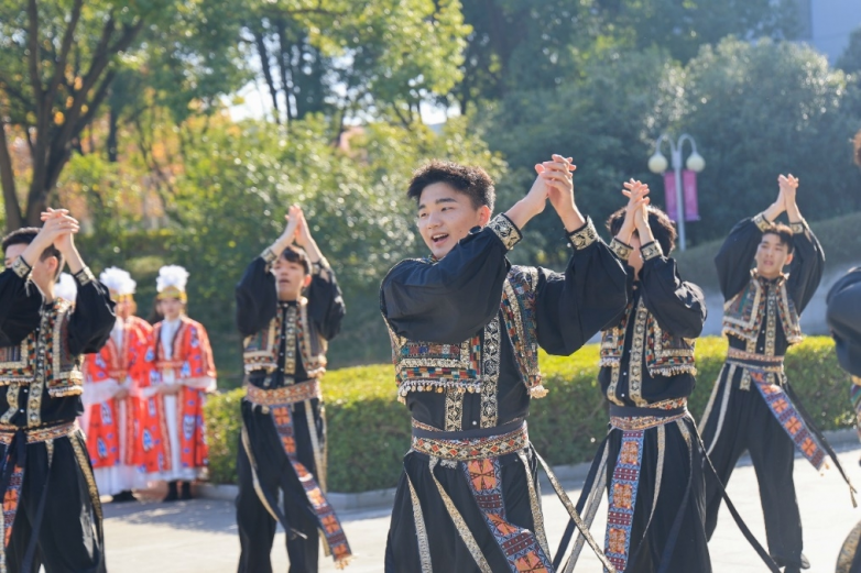 下午13:30,展演在期待中准时开始。广场上,舞蹈团的同学们倾情投入,以极具张力的表演,带领观众进行了一场跨越山河的文化之旅。豪迈奔放的草原舞步、灵动柔美的江南韵律、神秘圣洁的雪域情怀、热情似火的边陲风情……一个个精心打磨的节目,如同一块块多彩的拼图,共同绘就了中华民族多元一体的动人画卷。同学们用青春的舞姿,生动讲述了“我们从历史深处携手走来”的共同体故事,赢得了现场阵阵掌声。
