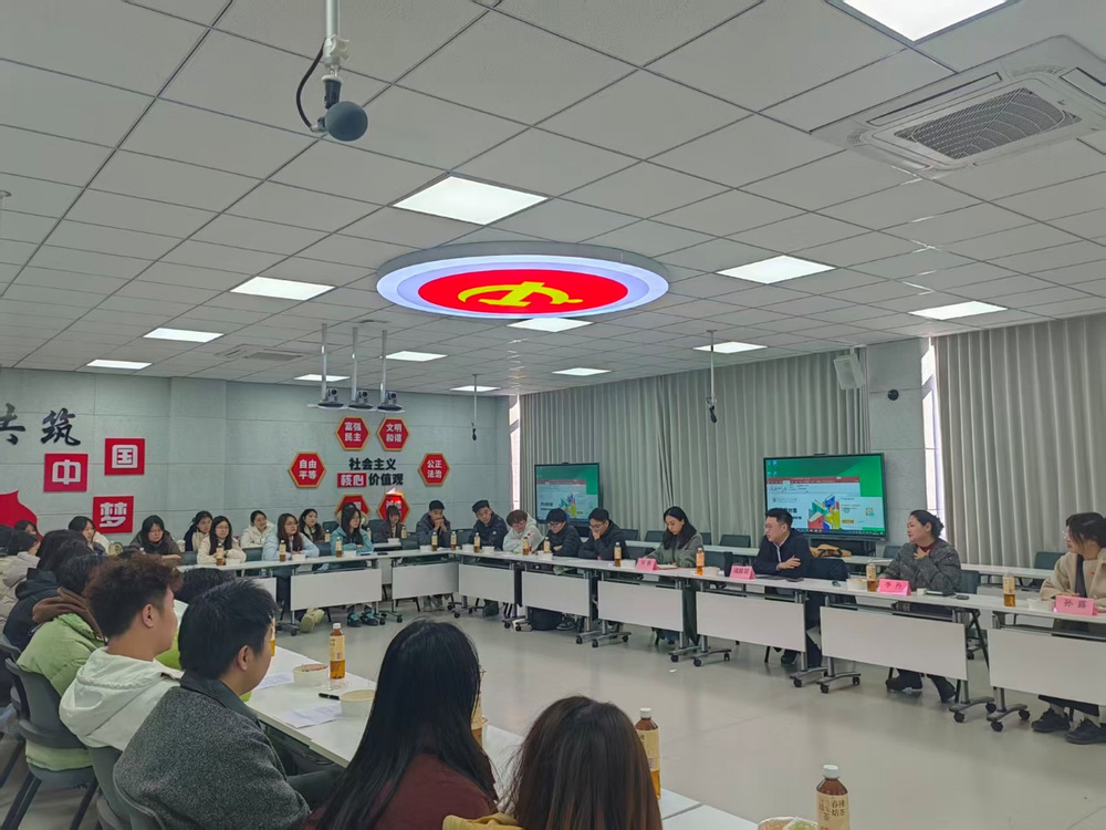 “在专业学习与学生工作中寻找平衡,在实践探索中明晰成长方向。”随后,曾艳、杨学勤、王玉妍、闫炜栋、扎西达杰5位同学依次发言,分享各自的大学成长故事与感悟。曾艳以专业第一的优异成绩,讲述了兼顾学业与团学工作的高效秘诀;杨学勤立足宣传岗位,畅谈在文字创作与活动策划中践行责任担当的收获;王玉妍分享了多次参与志愿服务的暖心经历,诠释着青年学子的奉献情怀;闫炜栋结合自身创业实践,展现了新时代大学生敢闯敢试的创新精神;扎西达杰带着来自高原的赤诚,表达了用专业知识助力家乡文化传播的初心与期许。发言之余,同学们也围绕专业实践拓展、考公考研指导、民族地区案例教学融入等实际需求,对学校的发展提出了意见与建议。