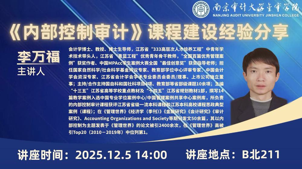 讲座预告 | 《内部控制审计》课程建设经验分享