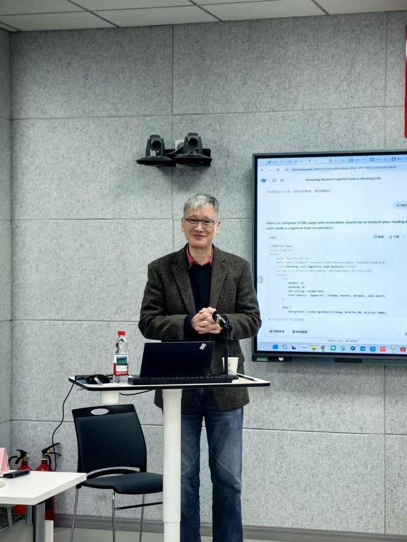 本次活动由金审学院基础教学部大外教研室组织,吸引了校内多院系及泰州学院外国语学院教师共同参与。讲座内容兼具理论高度与实践操作性,生动解答了“AI时代教师何为”之问,为高校外语教学改革提供了清晰可行的技术融合路径。