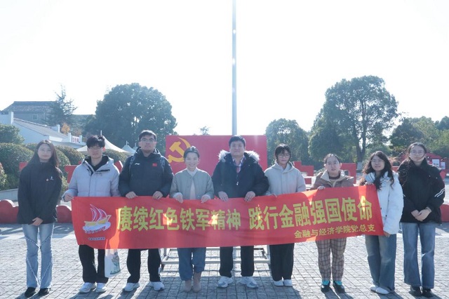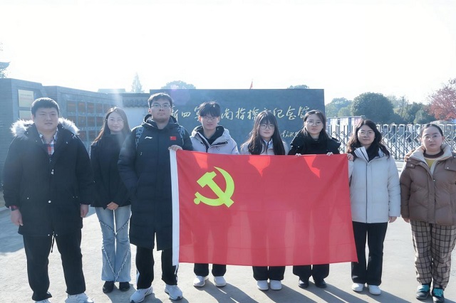 为深化党的二十届四中全会精神学习成效,推动红色基因融入青年成长血脉,引导学生党员牢记金融报国使命,2025年12月6日,南京审计大学金审学院金融与经济学院学生党支部跟随学院步伐,前往溧阳新四军江南指挥部纪念馆开展“赓续红色铁军精神,践行金融强国使命”主题党日活动。金融与经济学院学生党支部书记叶城洁老师、纪检委员闵瑶老师、组织委员吴金洋老师全程参与,与学生党员共同沉浸式感悟革命精神,在师生互动中锤炼党性,凝聚奋进力量。