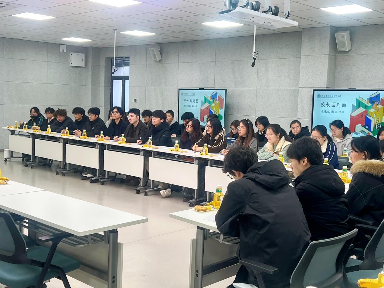 12月8日上午,我校校长俞安平走进2024级审计5班,与同学们开展了一场零距离、心贴心的交流座谈会。此次活动是学校构建畅通和谐师生沟通机制的重要举措,旨在回应学生关切,凝聚发展共识,助力学生成长成才。出席本次座谈会的领导还有校长助理孟琪璐、审计学院党总支书记王亚娜、学工处副处长刘颖。