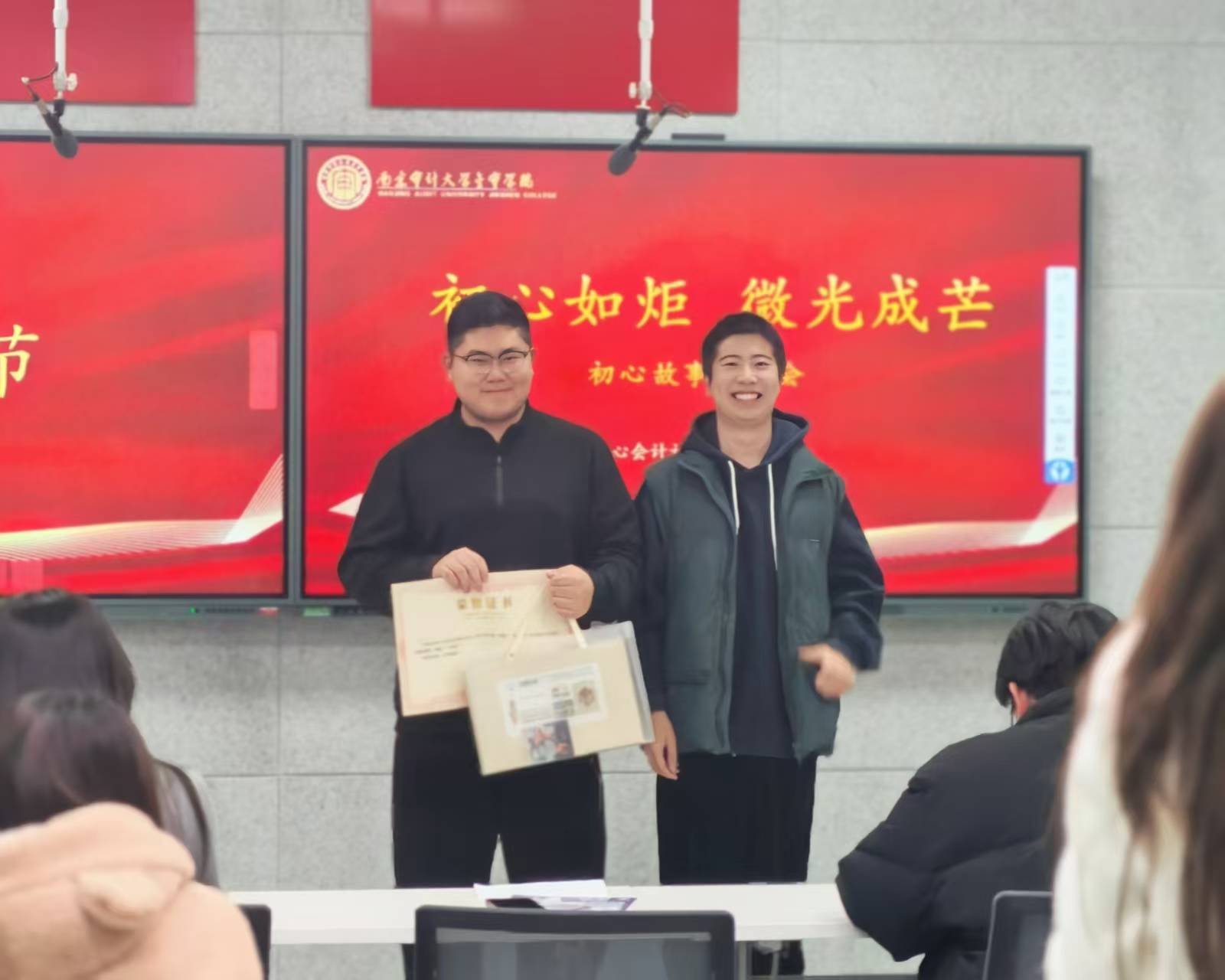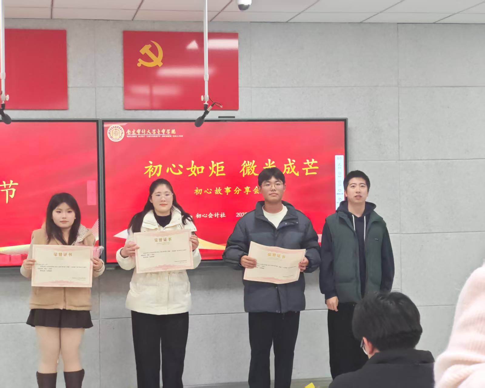 活动尾声,初心会计社社长倪宇寒作总结发言。他对各位选手的真挚分享与精彩表现给予高度评价,随后为获奖选手颁发荣誉证书,见证每份初心的闪光时刻。倪宇寒社长向全体社员发出号召,愿大家以初心为帆、以热爱为桨,在会计专业的广阔领域中笃定航向、逐浪前行,在深耕专业、践行使命的道路上书写青春华章。