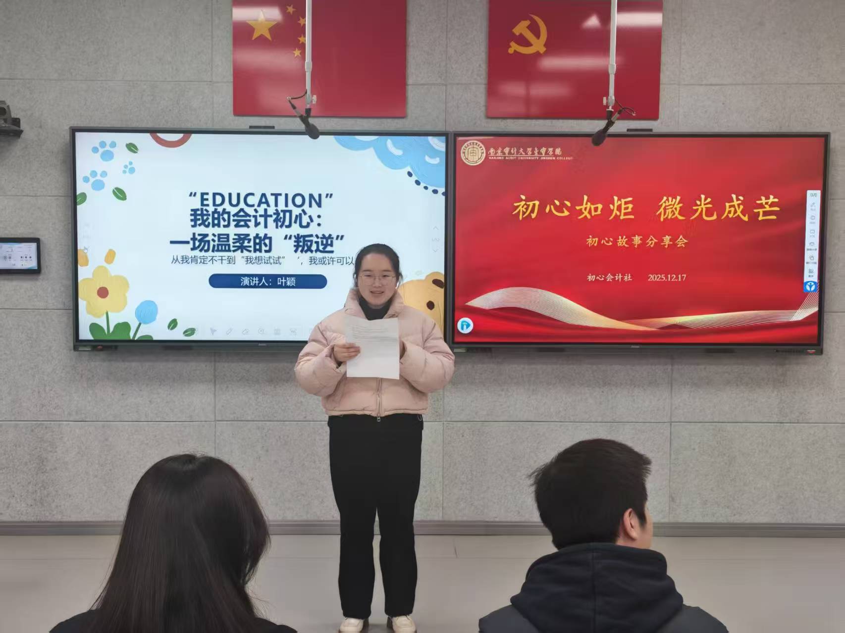 为引导会计专业学子坚守专业初心、明确学业方向,厚植爱岗敬业的职业情怀,强化责任担当意识,会计学院于2025年12月17日在B北211教室成功举办“初心如炬,微光成芒”初心故事分享会。会计学院副院长周莎老师、初心会计社全体社员及学院学生代表出席活动,共话初心使命,共绘青春蓝图。