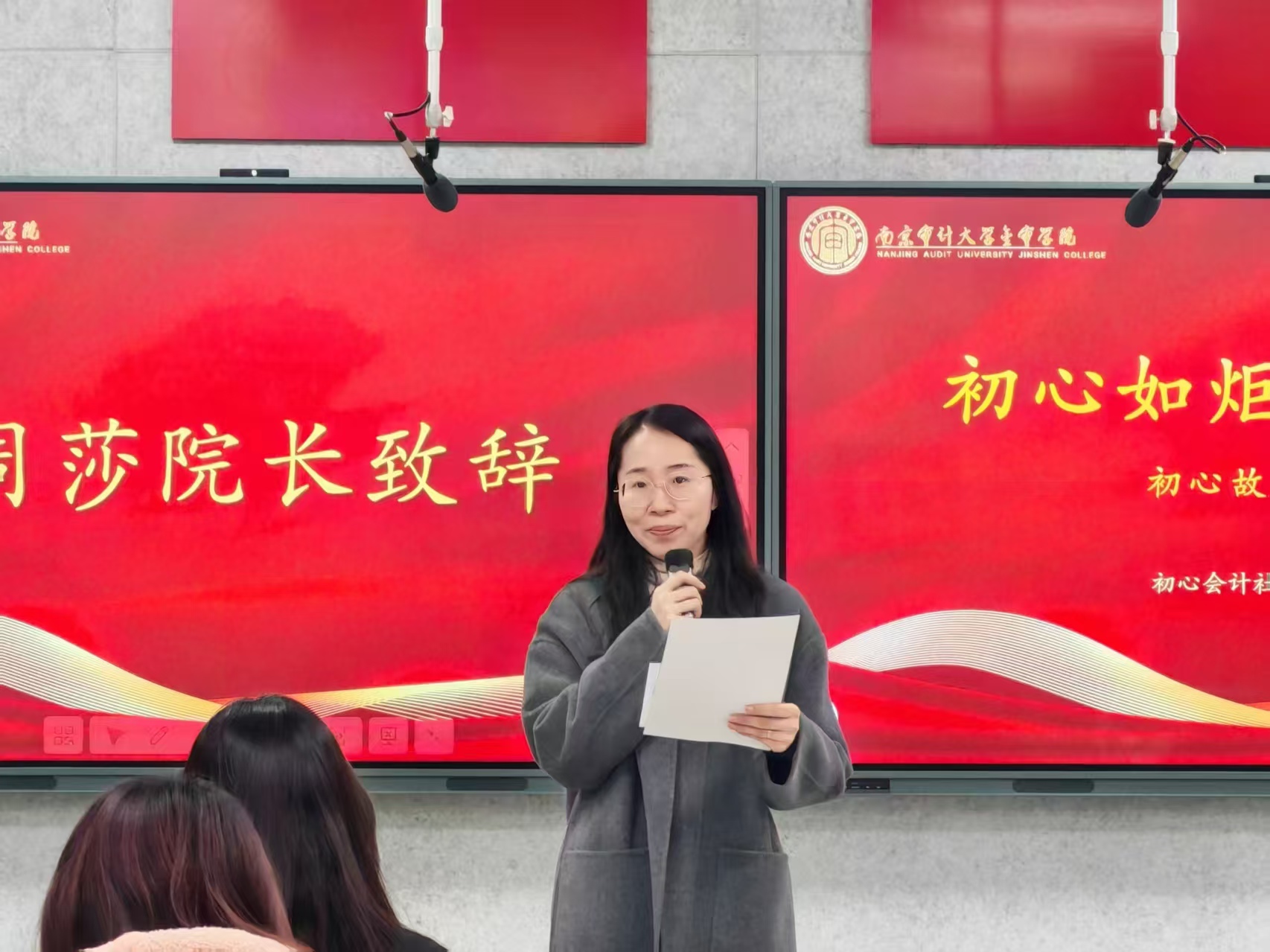 活动伊始,周莎院长发表致辞。她全面回顾了初心会计社全年开展的9场特色活动,活动覆盖思想引领、专业技能锤炼、升学就业赋能、社会责任培养等关键领域,有效实现了思想引领与专业成长的深度融合,为学子搭建了思学并重、知行合一的优质发展平台。她寄语社团持续坚守初心、凝聚青年力量,勉励全体学子以初心为炬,锤炼过硬专业本领、坚守职业底线,努力成长为新时代合格会计人才。院长的致辞立意深远、催人奋进,为整场活动奠定了坚定向上的基调。