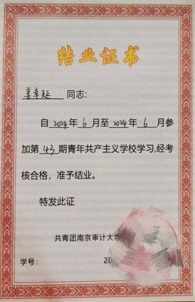 入校以来,他始终注重理论学习和道德修养,以高度的政治热情投入共青团工作。他坚持在实践中锤炼党性、提升素养,积极向党组织靠拢,最终以优异成绩完成青共校学习,展现出坚定的理想信念与扎实的理论功底。
