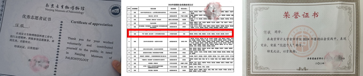 2025年暑期,她组建“青禾葡缘”暑期社会实践小分队赴镇江句容开展实践调研,并荣获省级实践项目。