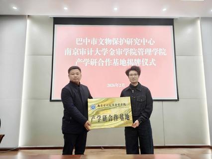 2026年2月26日,巴中市文物保护研究中心与南京审计大学金审学院管理学院共同在巴中市文物保护研究中心举行“产学研合作基地”揭牌仪式。这标志着一段跨越千里的“牵手”正式落地,一场关于文化遗产保护与高校智力支持的深度融合拉开序幕。