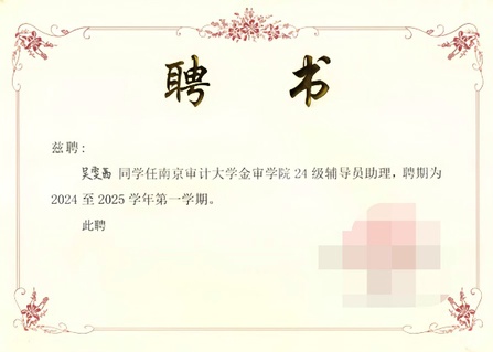 2025年10月,凭借出色的综合能力,她被任命为管理学院分团委副书记,分管学院团学组织部,并且管理学院智慧团建。她牵头制定学院分团委年度工作计划,统筹推进“换届表彰大会”“优秀学生干部交流大会”等大型活动,助力学院团学工作迈上新台阶。期间,她还积极参与思想引领培训,2024年6月通过第43期青年共产主义学校学习并结业,2025年5月完成发展对象培训班学习顺利结业,目前正在参加“青马学生骨干培训工程”,持续提升自身思想觉悟与服务能力。