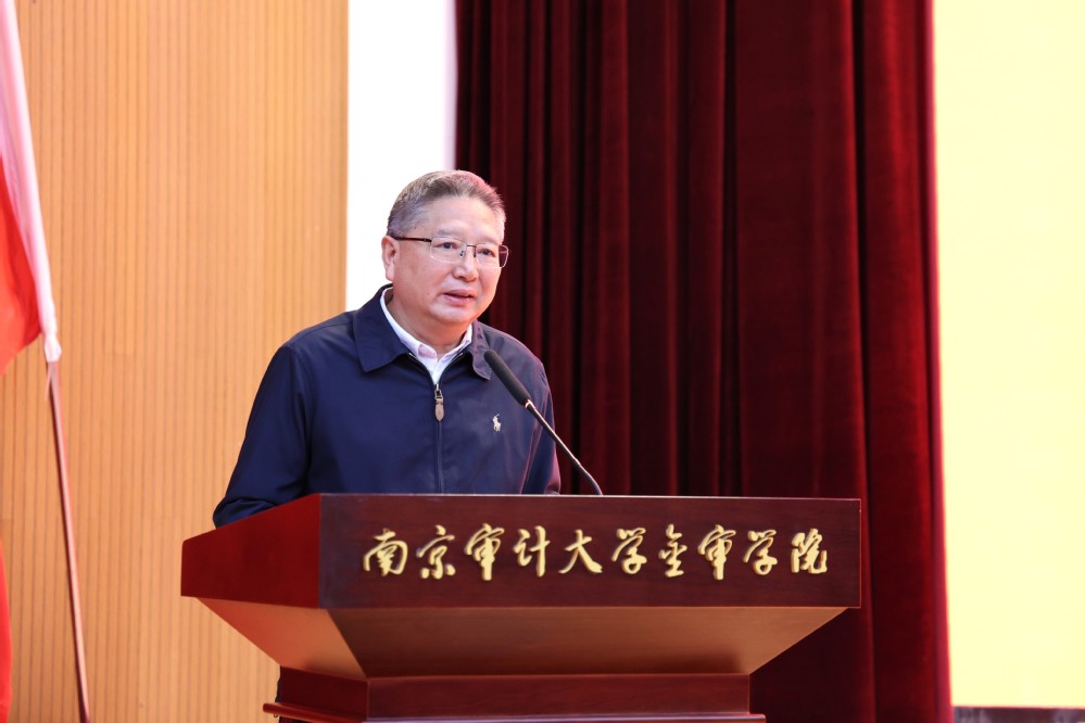2026年2月27日,南京审计大学金审学院2026年新春中层干部集中学习研讨班顺利举办。学校理事会副理事长侯思画、全体校领导、全体中层、科级干部及教师代表参会。本次研讨班以专家讲座、主题报告、分组研讨相结合的形式开展,旨在进一步统一思想、凝聚共识,锚定核心任务压实工作责任,为学校全年工作开局起步和高质量发展筑牢思想根基、明确行动方向。