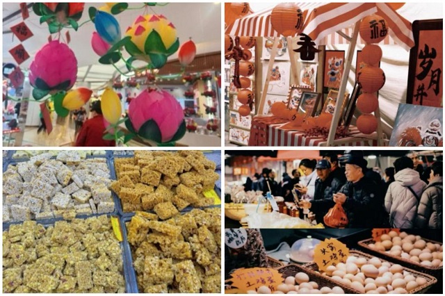 年味,更是唇齿间的鲜香滋味,是代代相传的家乡味道。南京六合的年味,在颜璟的笔下满是市井烟火与团圆期盼:商场里骏马卡通与金元宝气模相映成趣,花灯、灯笼、福字挂饰将新春氛围拉满,春联窗花琳琅满目,马年生肖贴画点亮街巷。而腊肠、腊肉、咸鸭在暖阳下泛着油润光泽,浓郁腊香融合着炒货、糖果的甜香,成为六合人团圆饭桌上不可或缺的家乡风味,更是刻在记忆里的年味底色。