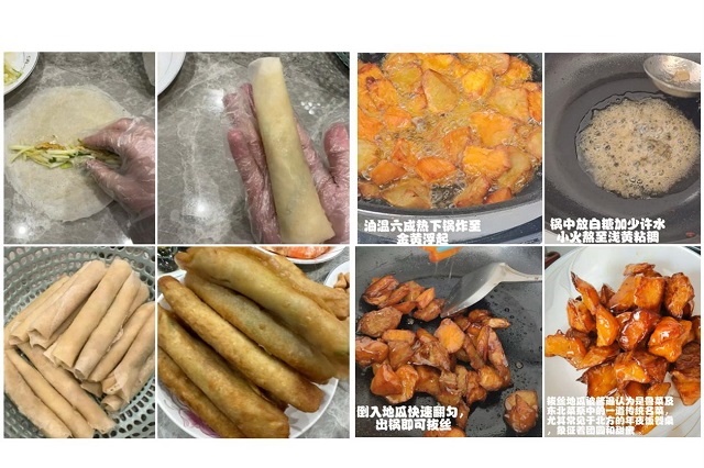 学子刘邢佳则将年味揉进一碗金黄酥脆的春卷里,从馅料处理、春卷包制到油炸出锅,一步步细致的制作步骤,不仅展现了地道的家乡美食技艺,更让春卷里的鲜香,成为新春佳节最具烟火气的幸福滋味。学子杜铭钰则带来一道地道的鲁菜,拔丝地瓜,这道北方地区年夜饭上象征的团圆与甜蜜的美食。